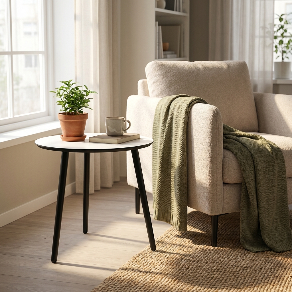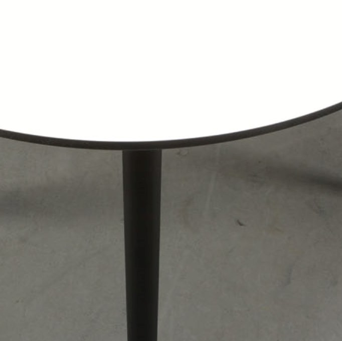 Her sælges vores runde sofabord i klassisk hvid højtrykslaminat med sortlakerede bøgeben. Der kan vælges mellem fire størrelser bordplade og tre højder af bordben. Med disse forskellige valgmuligheder kan du skabe et bord, eller en serie af borde, der passer til netop dine ønsker og behov.