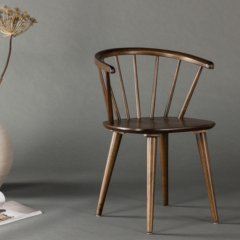 Bobby er en tidsløs klassisk spisebordsstol helt i mokkafarvet lakeret træ.